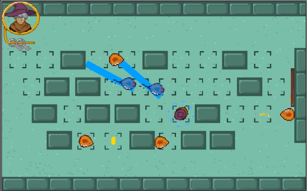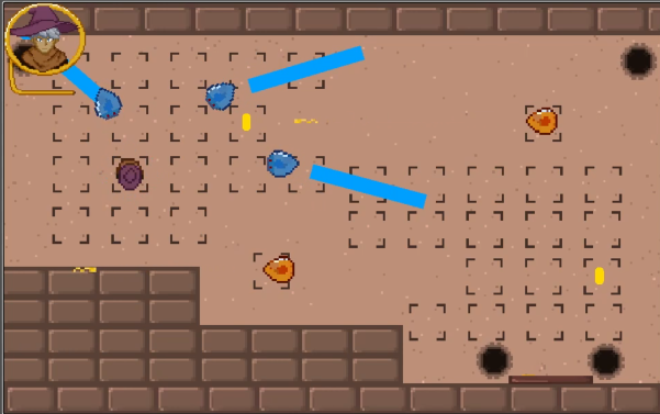 If a player arrives within a certain distance of any of these enemies their attacks are interrupted. They are forced to face the players side, locked to the rows of the keyboard, and move 2 spaces away from them.