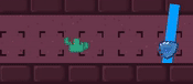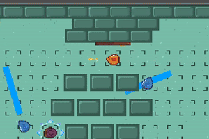 They attack by dashing a fixed distance across the screen on the shortest path to the player. They will collide with any tiles or blocked off keys that the player can interact with. After dashing they leave behind a blue "Slime Trail" that will damage the player if they blink onto it.